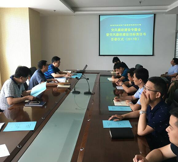 6月14日下午在公司会议室召开了“党风廉政建设专题会暨党风廉政建设目标责任书签署仪式”,支部分别与公司领导、各部门负责人签署了2017年度《党风廉政建设目标责任书》。 目标责任书的签订,进一步明确了公司领导班子、各部门负责人在党风廉政工作中的责任。党支部书记魏学谦要求班子成员和各部门负责人要在思想上高度重视党风廉政工作,认真分析研究目标责任书的各项内容,并按照目标责任书所规定的内容不折不扣地去执行。扎实落实“一岗双责”、“两个责任”的要求。