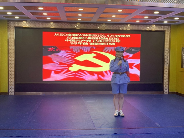 国资公司四通支部翟莉莉、贺咪朗诵《献给党的赞歌》
