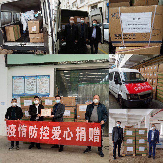 当前,我市防疫形势严峻复杂,疫情蔓延牵动人心,防护服、口罩等防疫物资需求量不断上涨。3月16日,宝鸡市国有资产经营有限责任公司、宝鸡市工业发展集团有限公司伸出援手,分别向渭滨区、金台区和高新区捐赠了价值十万余元的防疫物资,本次共计捐赠防护服2000套,医用防护口罩3000个。这批防疫物资将根据需要尽快分发到各个社区工作人员及医护人员手中,助力我市疫情防控工作。