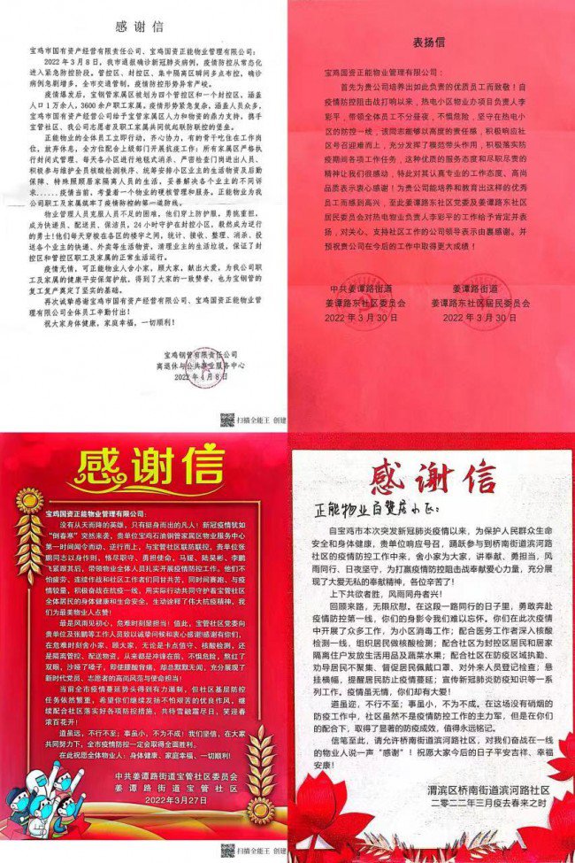 近期,各街办、社区对疫情防控工作中敢于担当、积极作为,在坚决打赢疫情防控阻击战工作中表现突出的物业企业和先进个人进行表彰,正能物业人用信念与坚守,获得了政府、社会和业主的认同和支持,其中,宝钢管、电力新苑、宝桥、中铁百赞居、一局五公司、一局三公司等20余个物业小区、10余名一线人员分别获得相关部门颁发的荣誉。