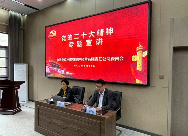为学习宣传贯彻好党的二十大精神,引导公司党员干部员工把思想和行动切实统一到习近平新时代中国特色社会主义思想和党的二十大精神上来, 4月21日下午,国资公司特邀宝鸡市委党校党史党建室副主任、教授,市政协委员徐驰文教授进行专题宣讲。