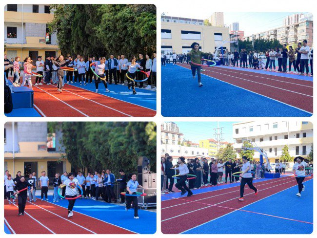 何妨摘星,投掷梦想。在大家形态各异的投篮姿势下,空中划出一道道优美的抛物线,瞄准、屈膝、起跳,这些连贯动作一气呵成,篮网“唰、唰”进球的声音此起彼伏。场下的啦啦队们,为比赛队员们加油鼓励,掌声、笑声、加油声、欢呼声充斥在整个操场。