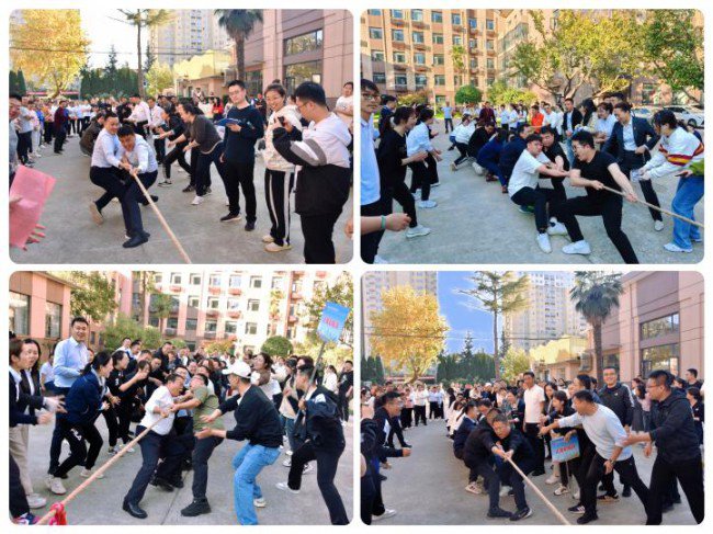 心无旁骛,超越自我。竞走呼啦圈传达一种力量——自我超越,获得自信。这个项目非常具有难度和挑战性,但还是会有选手主动挑战。一个呼啦圈,连接的是团结和友爱,传递的是勇气和力量,演绎的是奋斗和拼搏。 合力拔河劲气腾,团结合作共胜擎。一群人、一根绳、一股劲、一条心,国资健儿以“力拔山兮气盖世”的磅礴气势和“团结一心胜艰险”的奋进姿态,在拉扯僵持之间,激烈角逐,“绳”采风扬,展开了一场力量上的对决。一根长长的拔河绳,凝聚着勇于拼搏的精神风貌,承载着团结奋进的强大凝聚力。 呐喊助威 天高云阔,风语成歌。赛场的两边,欢呼声、呐喊声此起彼伏,他们雀跃着、注视着、凝望着,带着由衷的赞美与热烈的鼓励,为运动员们奔腾的热血喝彩,也为永不停歇的战斗精神加油助威,尽显国资一家亲的团结精神与强大凝聚力。