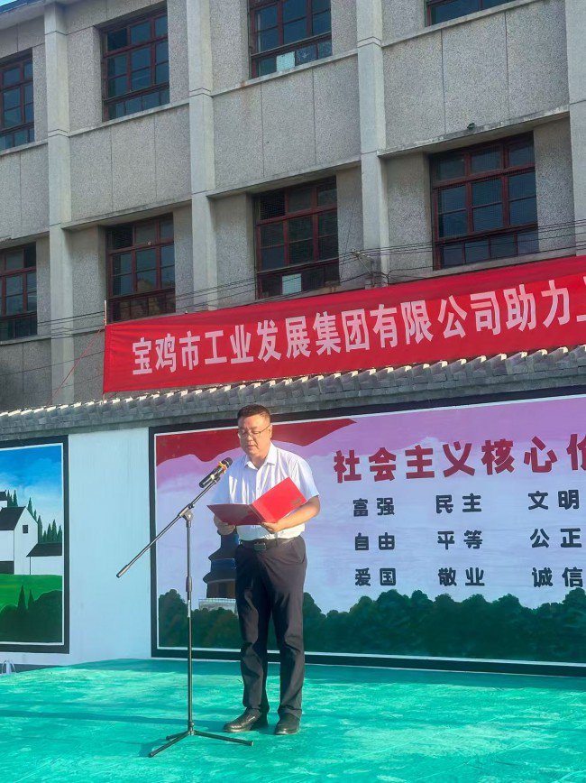 金秋送爽,硕果盈枝。8月19日下午,一场充满温情与希望的“金秋送暖 助学圆梦”活动在扶风县绛帐镇上宋村举行。宝鸡市工业发展集团有限公司带着对乡村教育事业的深切关怀和对莘莘学子的殷切期望,为上宋村品学兼优的学子们送去助学爱心物资,以实际行动践行国有企业初心使命,为农村学子圆梦续航,为乡村振兴赋能助力。工发集团党委书记、董事长罗鹏伟一行及绛帐镇人民政府、上宋村村委会相关负责人、受赠学生及家长代表共同参加活动。 聚焦教育振兴 彰显国企担当